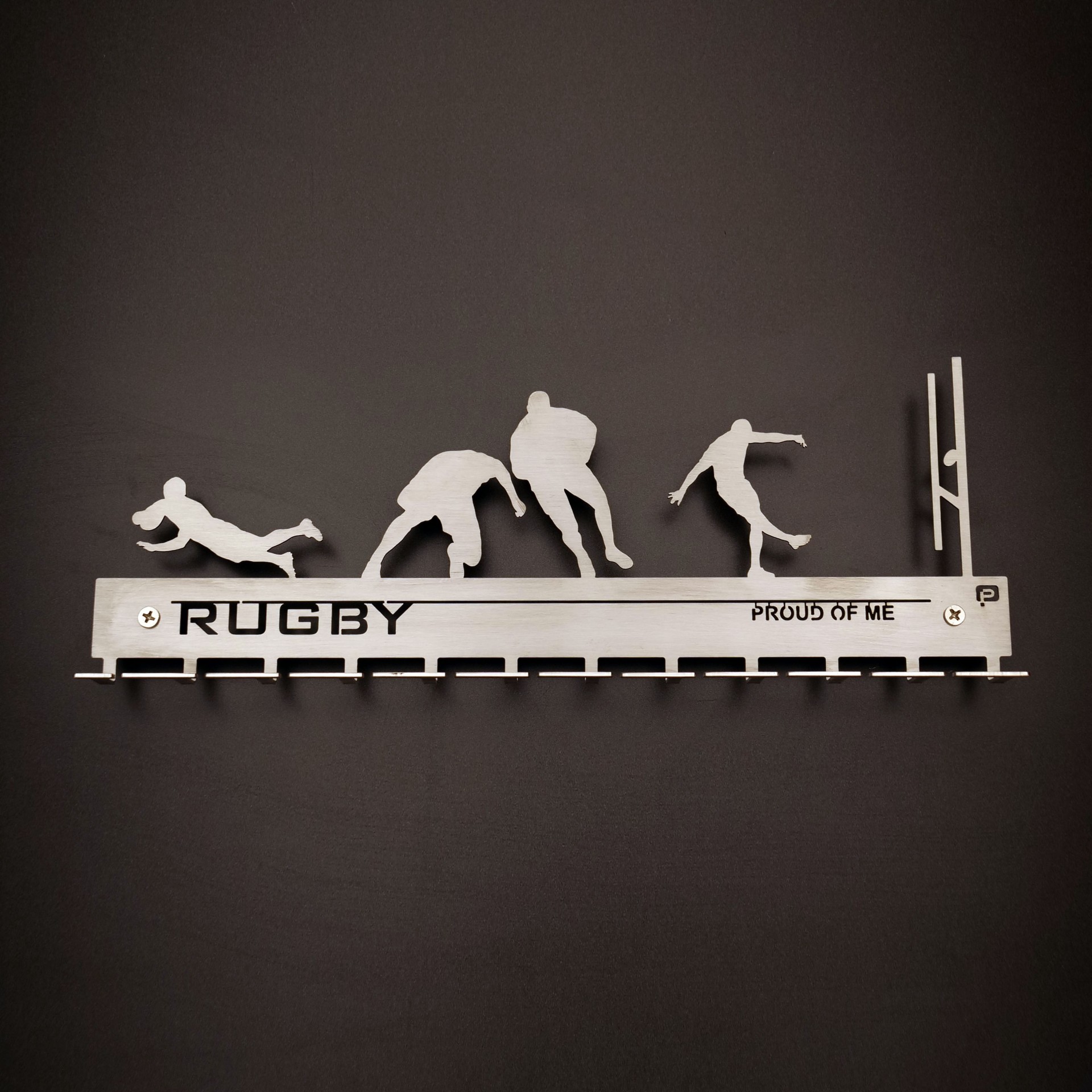 Design de otimização de espaço com 12 cabides que permitem “arrumar” perfeitamente 23 medalhas, mas com a possibilidade de suportar o dobro.