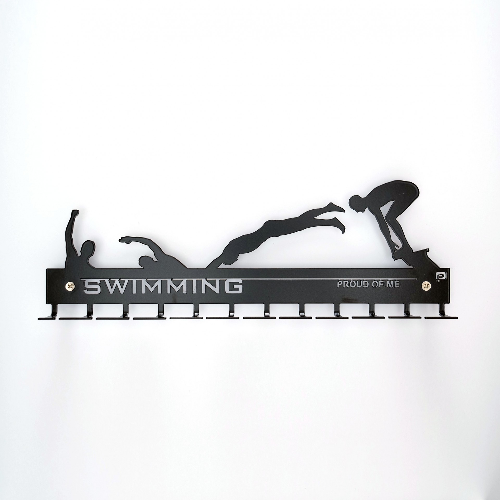 Crawl, costas ou bruços! Toda a leveza de movimentos explícitas neste porta medalhas.